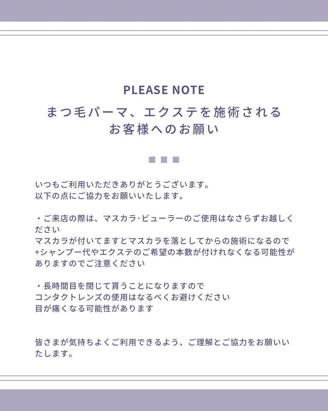 まつ毛パーマ、エクステを施術されるお客様へのお願い